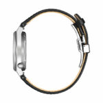 Graues Zifferblatt und schwarzes Lederarmband